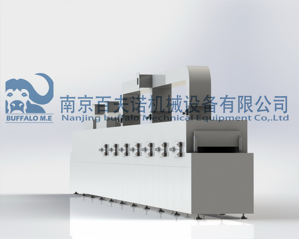 本機(jī)的傳動(dòng)主要采用不銹鋼鏈條或不銹鋼網(wǎng)帶,用于不同物料生產(chǎn),可根據(jù)不同要求任意調(diào)節(jié)適宜速度運(yùn)行。本機(jī)電熱元件選用優(yōu)質(zhì)乳白色石英玻璃管為加熱元件,具有輻射系數(shù)高、能耗低、升溫快等特點(diǎn)。本機(jī)設(shè)有一個(gè)送風(fēng)口及兩個(gè)排風(fēng)口,并設(shè)有蝶閥風(fēng)門控制風(fēng)量。本機(jī)設(shè)有預(yù)熱區(qū)、恒溫區(qū)、降溫區(qū)、冷卻區(qū)等區(qū)域,溫度范圍有50-300℃和50-400℃兩種。本機(jī)除機(jī)架外,全部采用不銹鋼材料制作,保溫材料采用硅酸鋁纖維,保溫性能好等優(yōu)點(diǎn)。