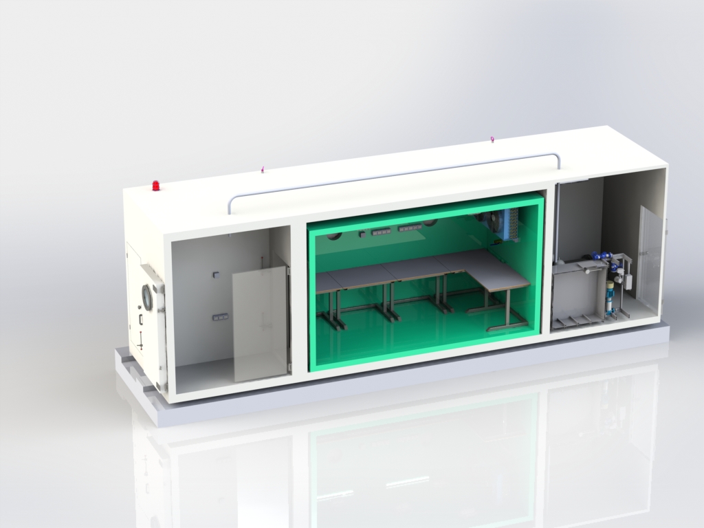 高原模擬艙為有人進(jìn)入型。艙內(nèi)壓力、溫度、濕度、紫外線強(qiáng)度均為自動(dòng)控制等。本模擬艙可以用于高原環(huán)境下人員訓(xùn)練、野生動(dòng)物保育和其它科學(xué)實(shí)驗(yàn)。設(shè)備為一體化設(shè)計(jì)。僅需提供氧氣、自來(lái)水及供電即可維持使用。艙體的大小及功能可以根據(jù)需求進(jìn)行設(shè)計(jì)。